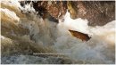 Salmon making their way, with some difficulty, up a Perthshire river while it is in full spate.